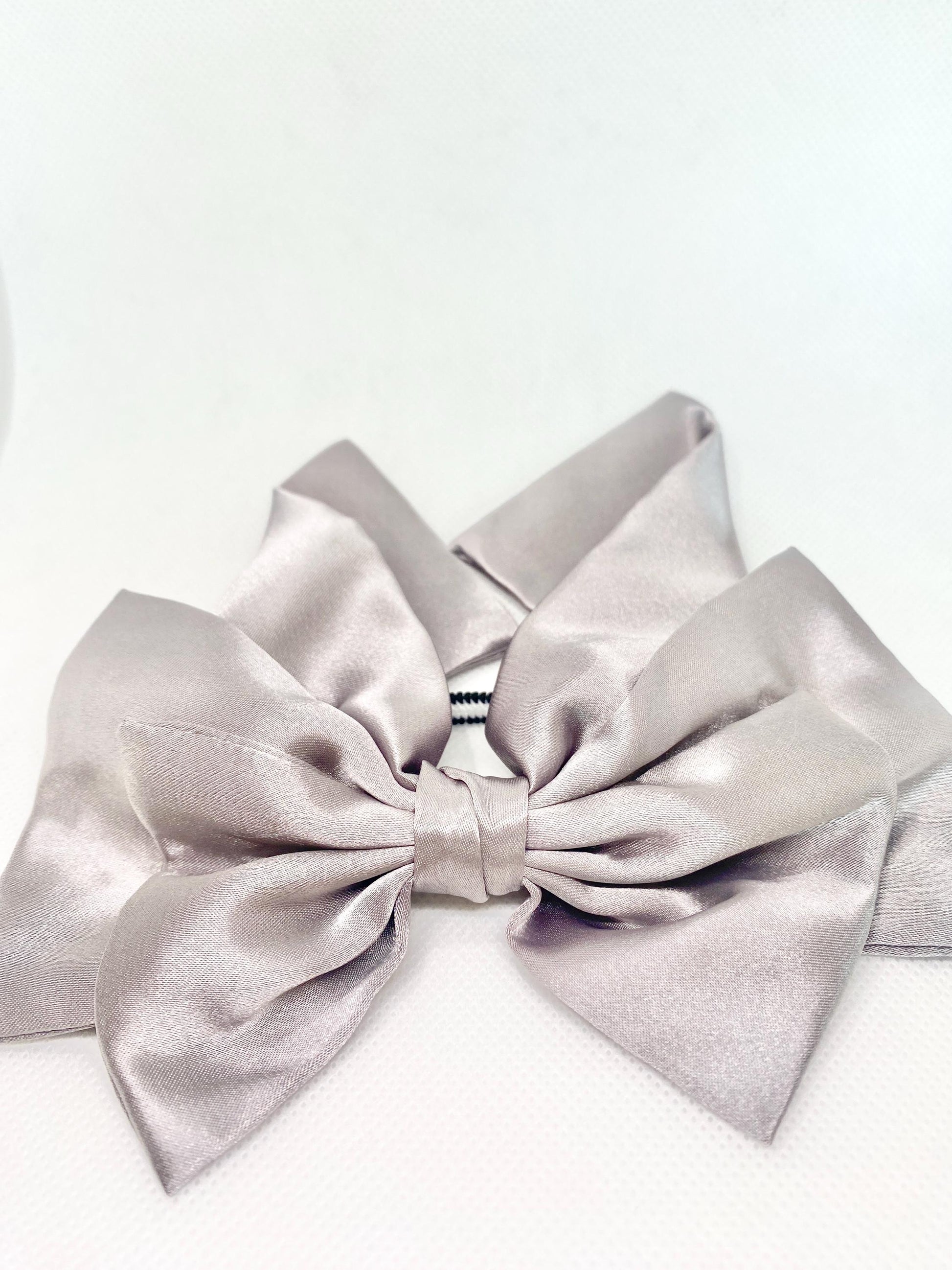 3 Layered GREY Satin Hair Bow: Christmas Vibes, Kids and Adults - Hand-stitched