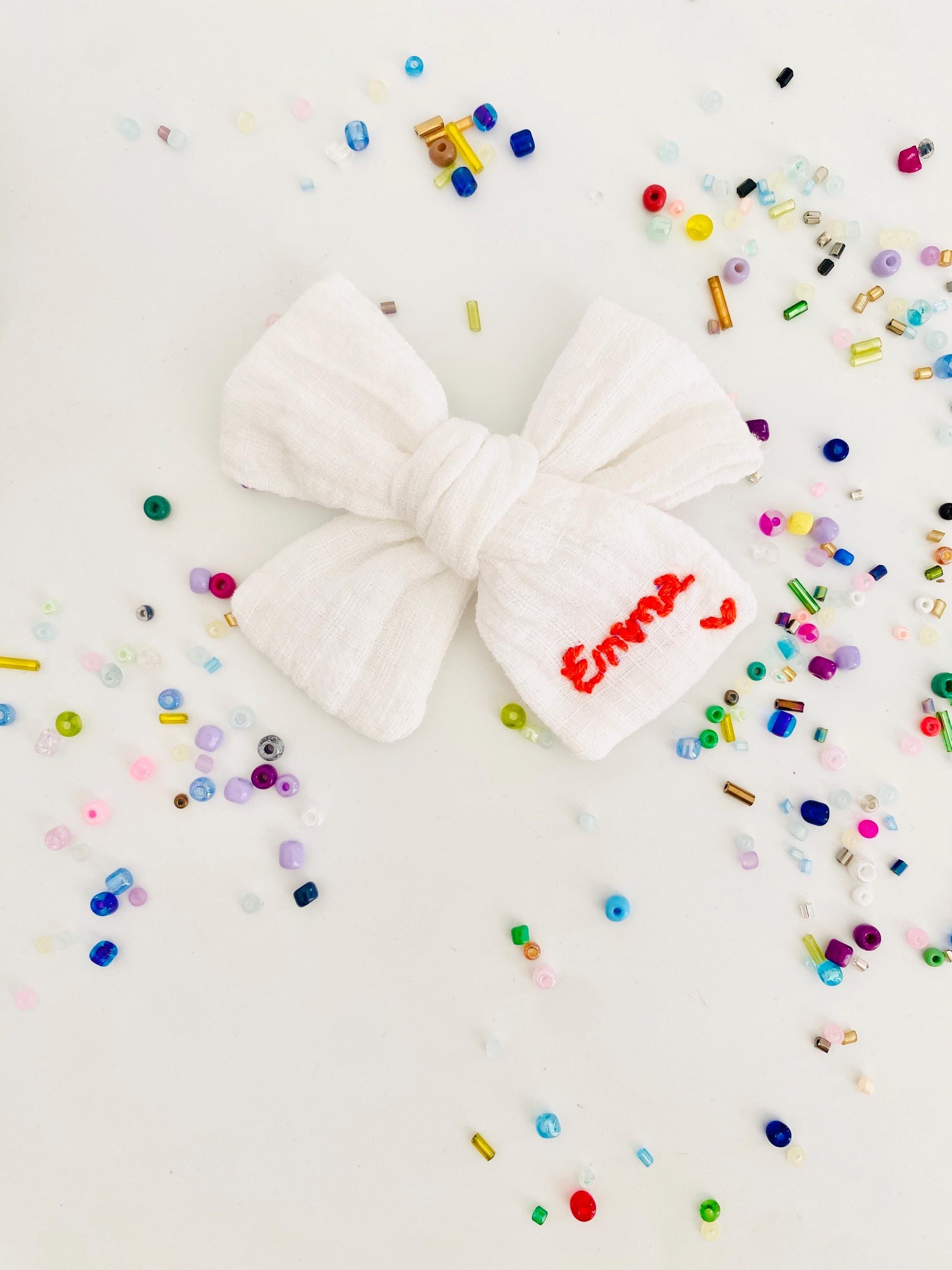 ♥ cotton bow with hand embroidered name
