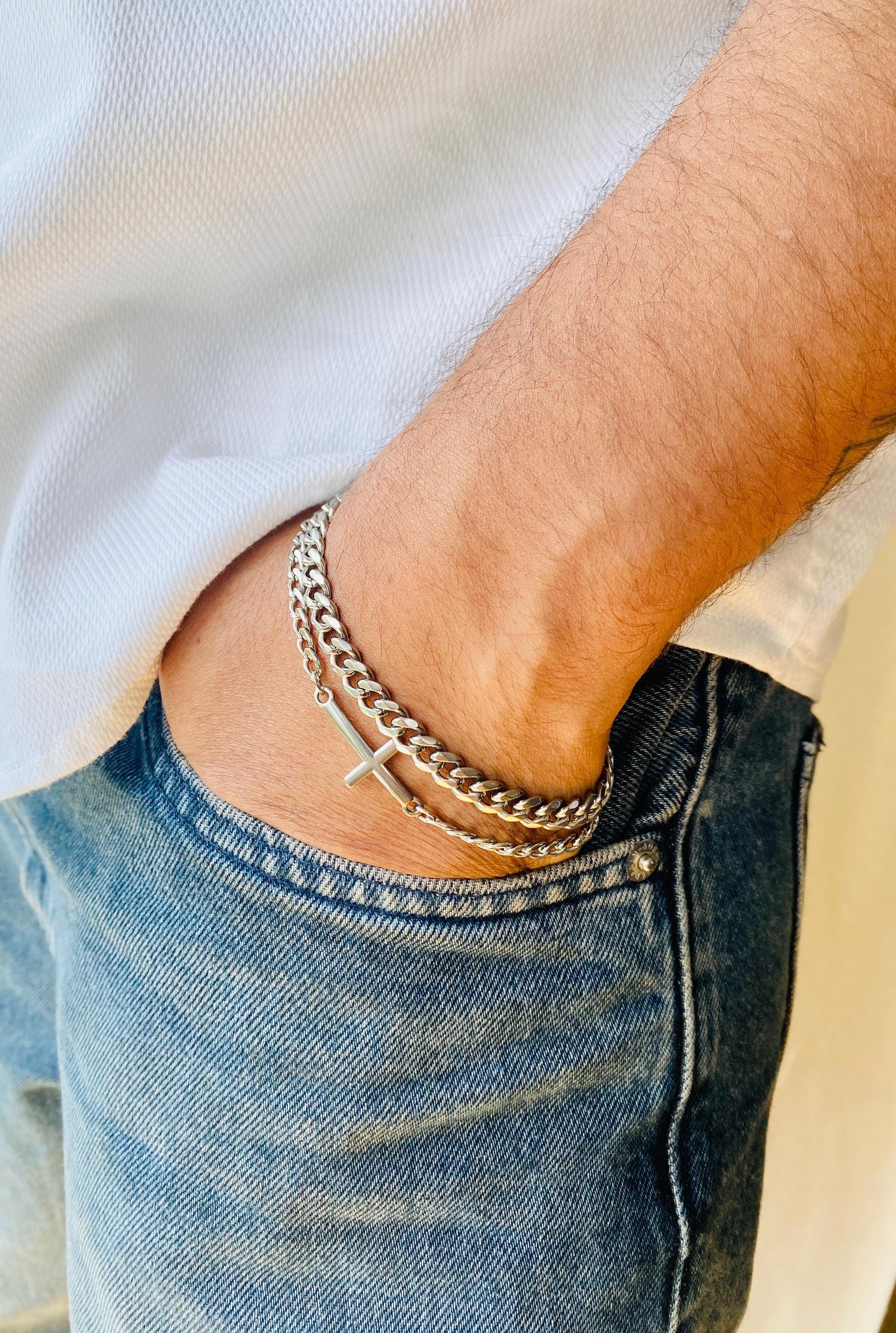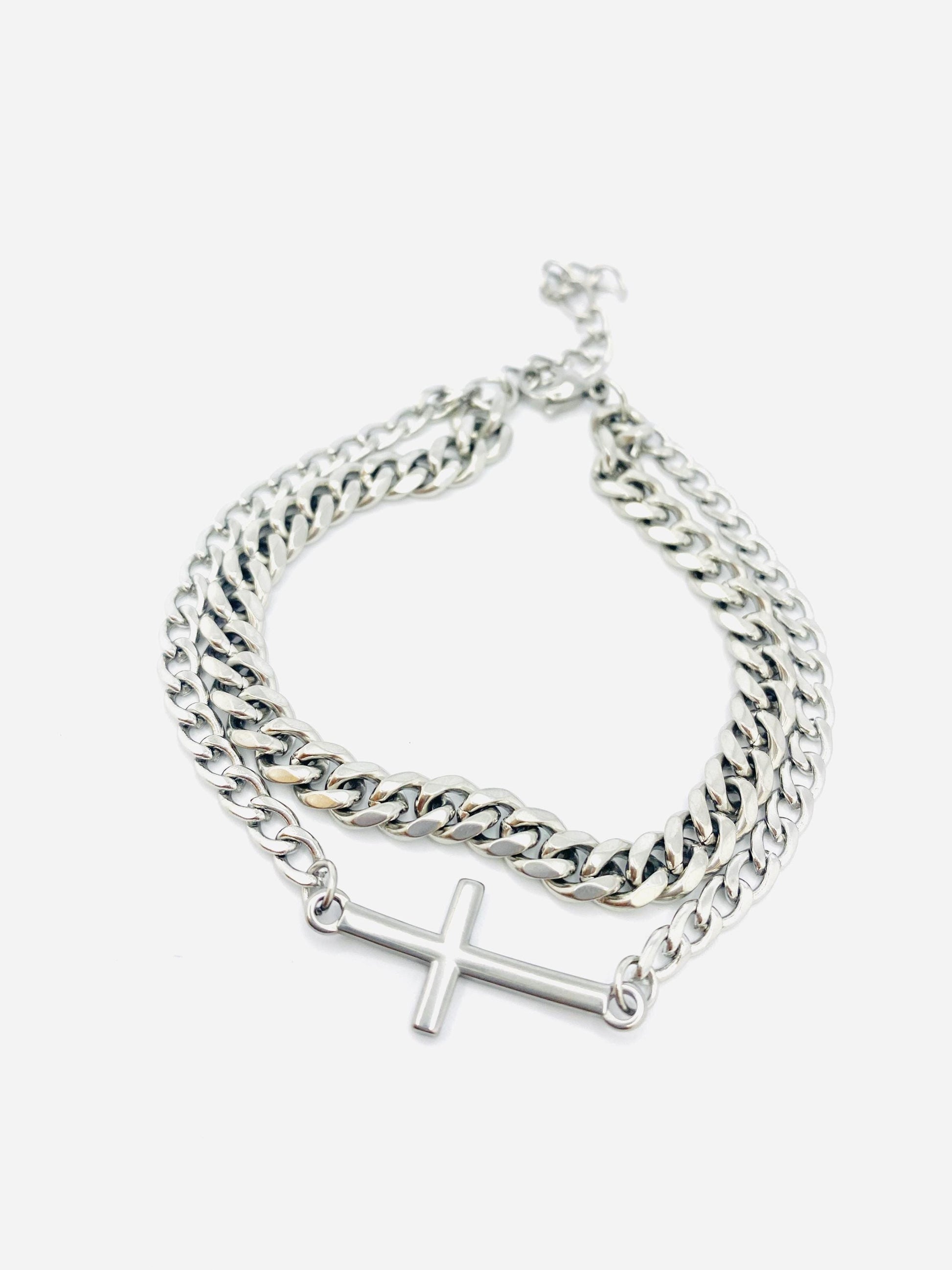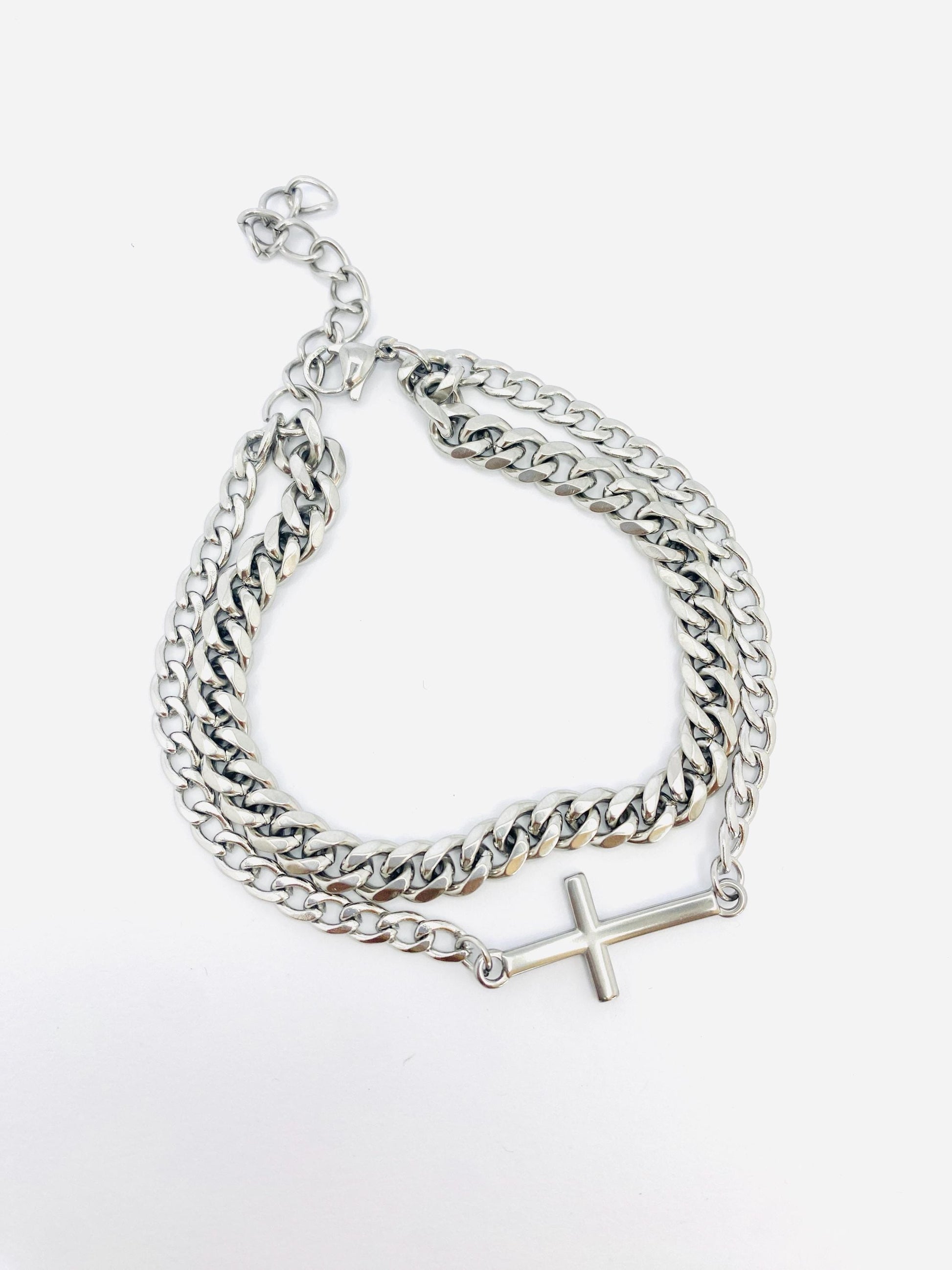 Steel Cross Chain Bracelet: Multi Layer, Stainless Steel, Unisex